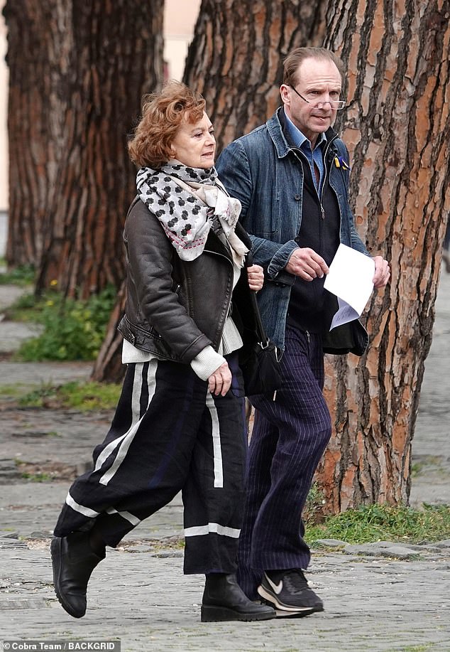 Acogedor: Ralph, que se encuentra en Roma filmando el thriller del Vaticano Cónclave, basado en un libro de Robert Harris, fue fotografiado el mes pasado del brazo de Amelia Richards, de 52 años.
