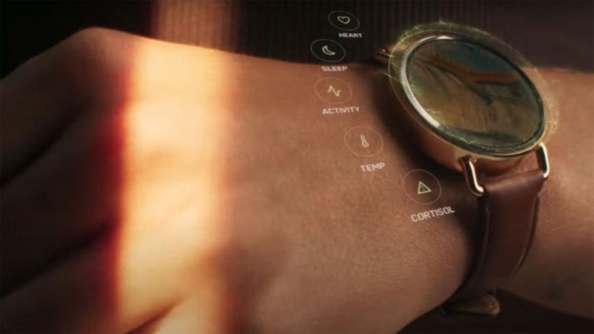 Por nombre Sin vigilanciaCuando está atado a su muñeca, es capaz de leer el estrés, la temperatura, la frecuencia cardíaca, el movimiento y los patrones de sueño, pero si quiere saber la hora, necesitará otro mirar.