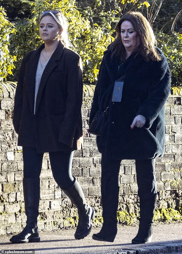 Y el viernes, Emily Atack, de 33 años, y su madre. Kate Robbins, de 64 años, se puso botas hasta la rodilla y chaquetas elegantes mientras disfrutaban de un paseo matutino.