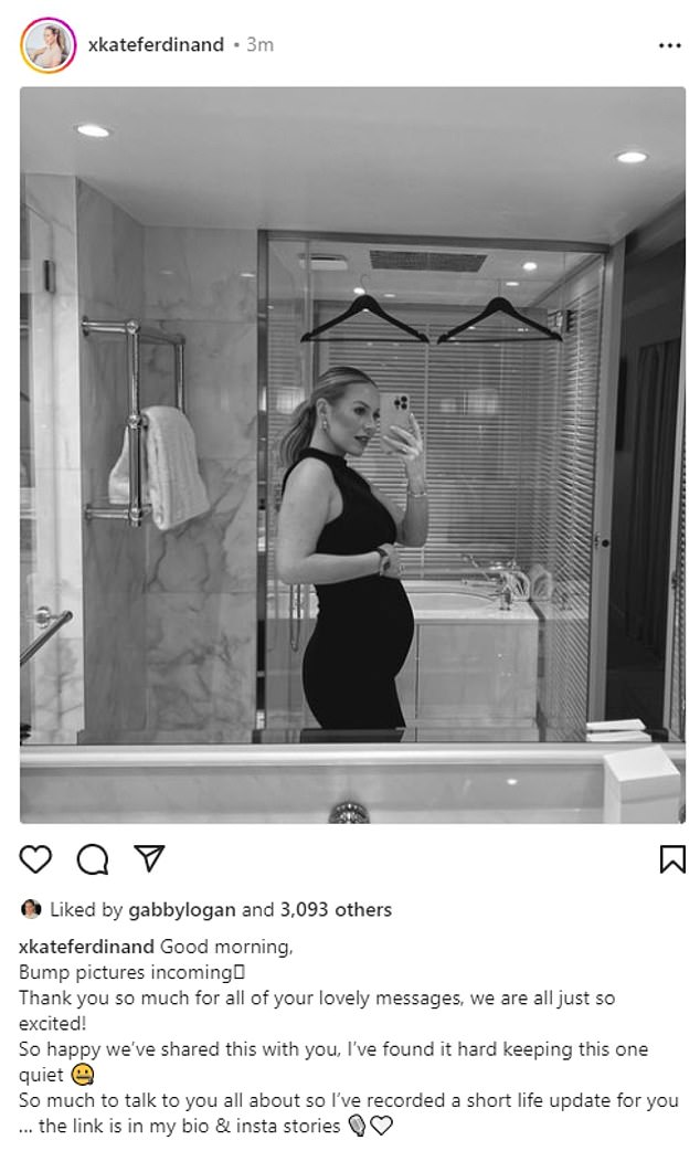 Subtitulando la publicación, ella escribió: ‘¡Muchas gracias por todos sus encantadores mensajes, todos estamos muy emocionados! Estoy tan feliz de haber compartido esto contigo, me ha resultado difícil mantener esto en silencio.