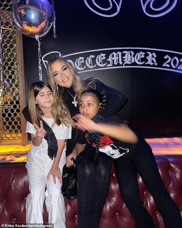 Khloe Kardashian posa con orgullo con sus sobrinas Penelope Disick y North West en la fiesta de Bar Mitzvah del sobrino Mason Disick en WeHo