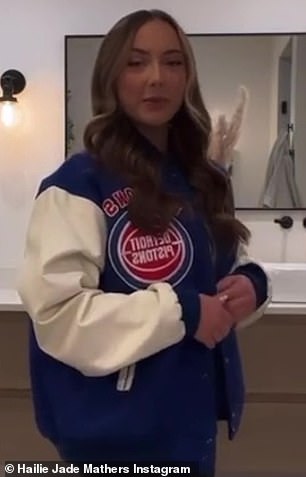 Su rutina de maquillaje: Hailie Jade Mathers compartió un video de preparación mientras se maquillaba y se vestía para un partido de baloncesto de los Detroit Pistons.