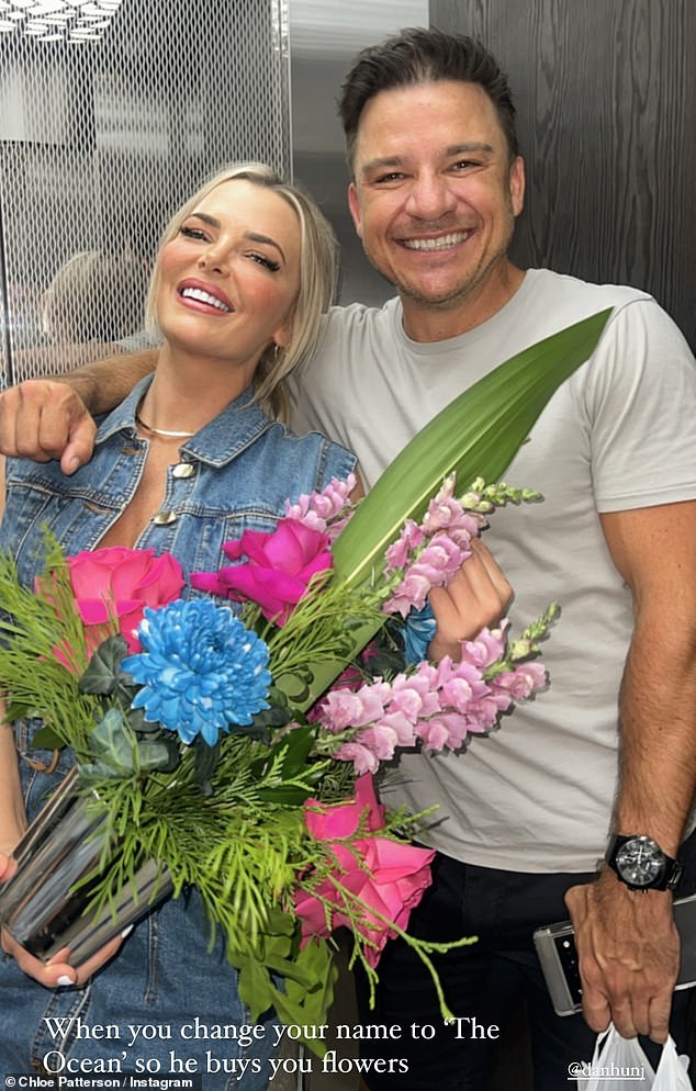 Ella compartió una instantánea de la pareja junto con la leyenda: “Cuando cambias tu nombre a ‘The Ocean’ para que él te compre flores”.