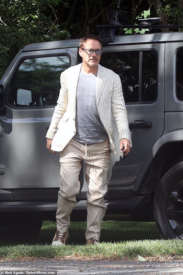 Se ve a Robert Downey Jr y Andy Cohen llegando a la fiesta de cumpleaños repleta de estrellas de Jimmy Fallon para su hija de 10 años en The Hamptons. 24 julio, 2023