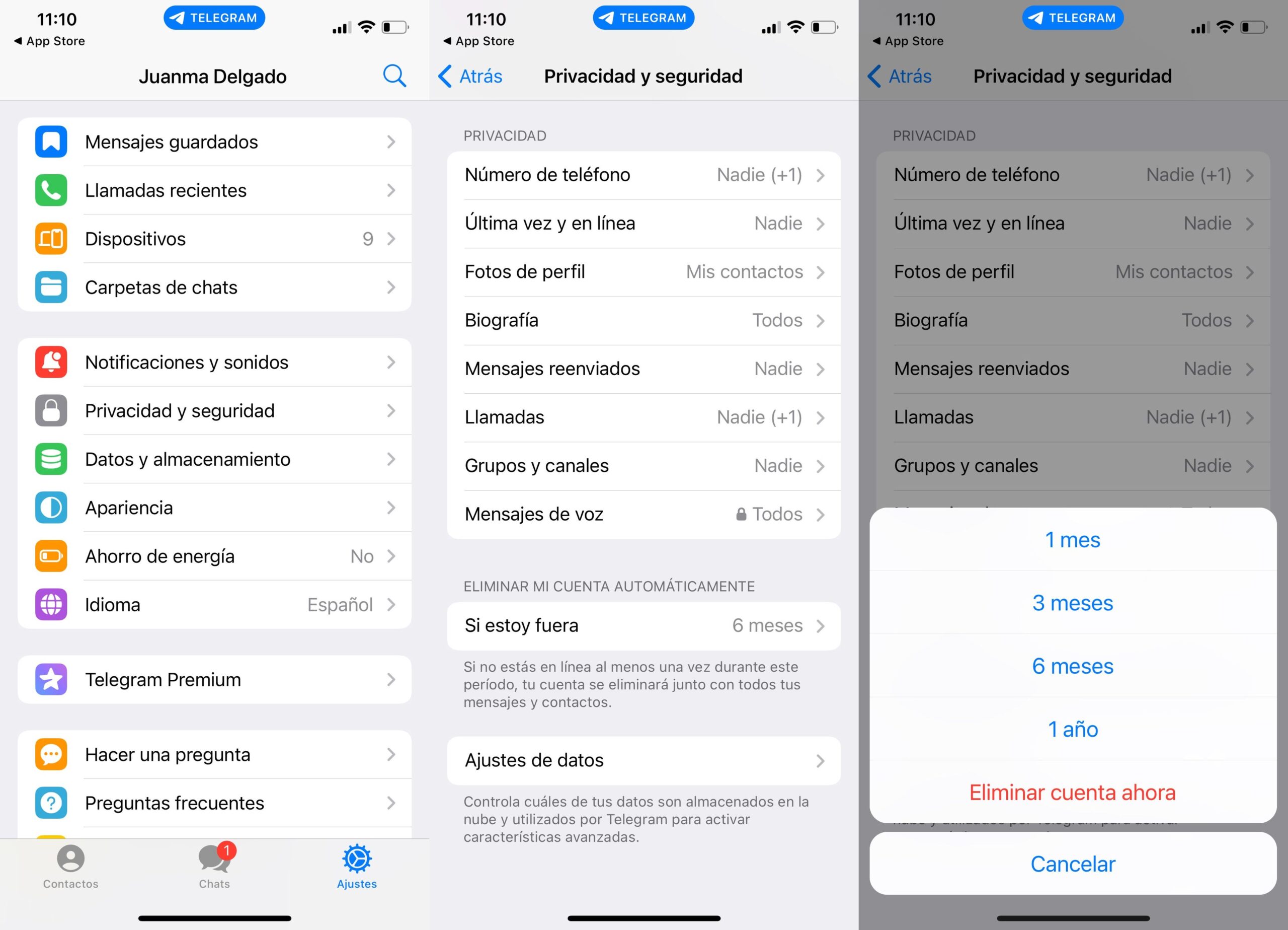 En el caso de Telegram, este mecanismo se puede activar directamente desde los ajustes. Su función es eliminar automáticamente el chat si no se accede durante un determinado periodo de tiempo.. Sin duda, esto puede ser útil para proteger la privacidad de tus conversaciones si pierdes el móvil o te lo roban, pero también si mueres.
