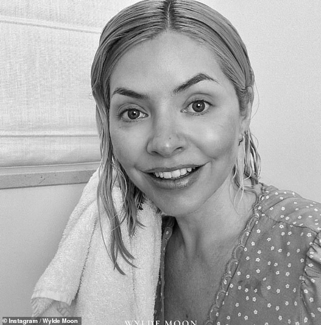 Holly Willoughby, sin maquillaje, muestra su cutis fresco mientras promueve una sesión de preguntas y respuestas sobre el cabello en…