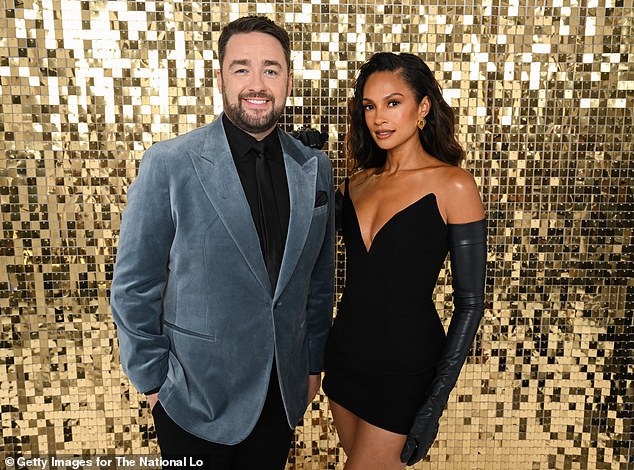 Alesha Dixon deslumbra con un minivestido de terciopelo y guantes de cuero mientras posa con el elegante Jason Manford para…