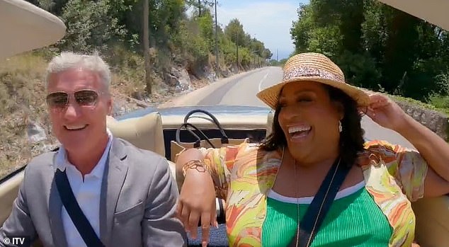 Alison Hammond se calienta bajo el cuello cuando el piloto de Fórmula Uno David Coulthard la lleva a dar una…