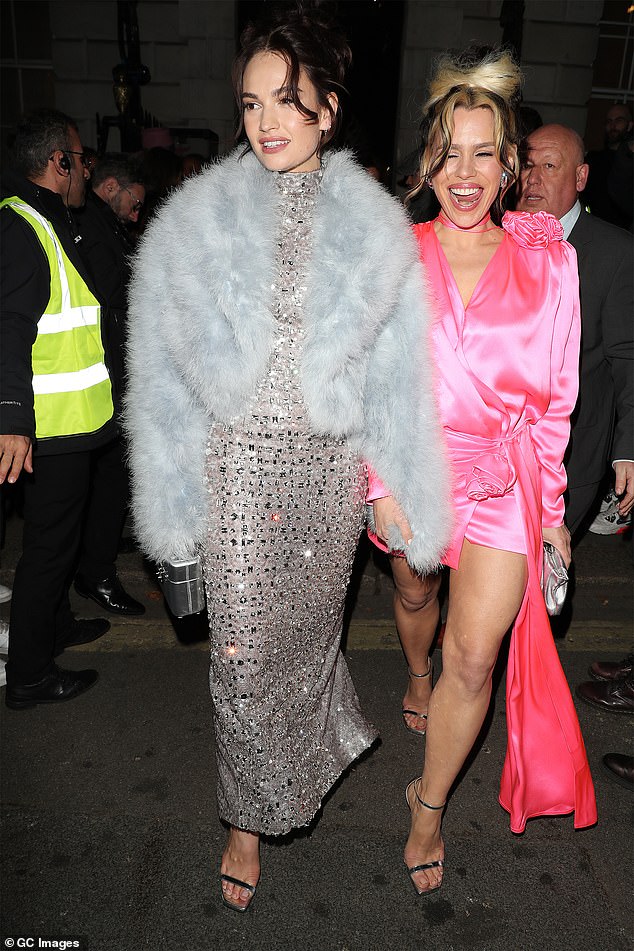 Lily James and Billie Piper exploded into a fit of giggles as they made an animated exit from the British Vogue…