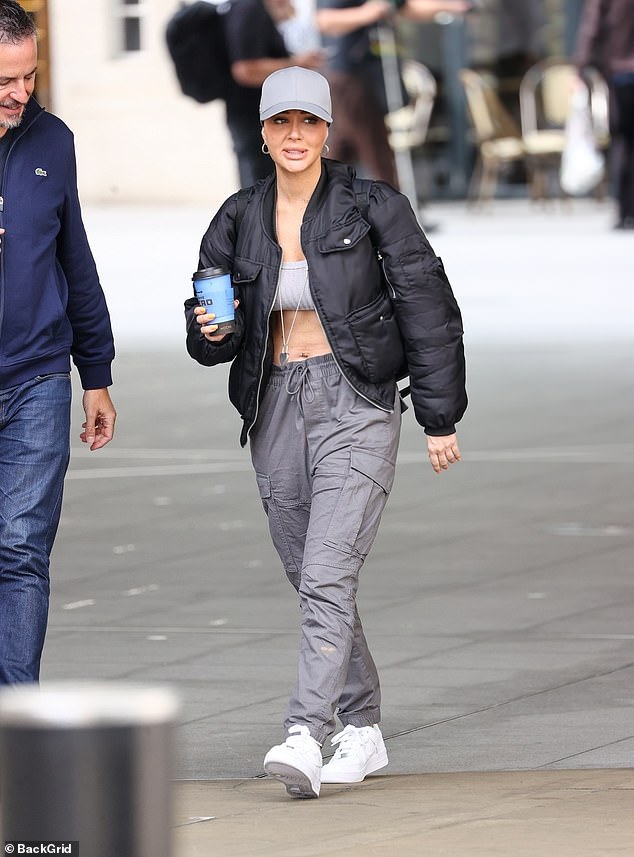 Vick Hope llama la atención con un top corto blanco mientras muestra su enorme anillo de compromiso de diamantes mientras…