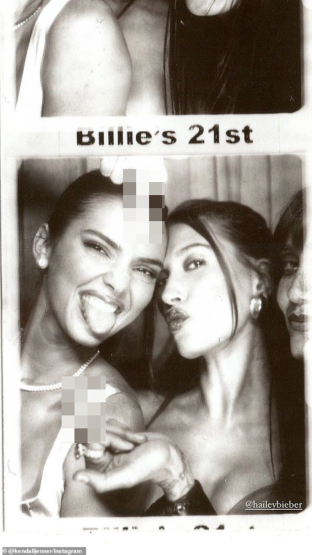 Kendall Jenner y Hailey Bieber se pusieron nerviosos en una cabina de fotos mientras posaban juguetonamente con los dedos medios…