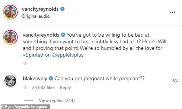 Blake Lively deja un comentario coqueto para su esposo Ryan Reynolds después de verlo bailar mientras espera a su cuarto…