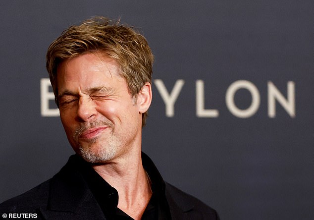 Brad Pitt jugó con los fotógrafos durante una sesión fotográfica para su nueva película Babylon en el Grand Rex de…