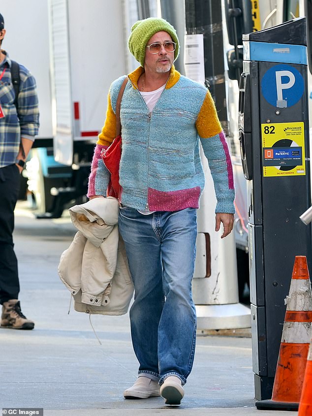 Brad Pitt sufrió un raro fallo de moda el martes cuando se puso un extraño conjunto multicolor para su llegada…