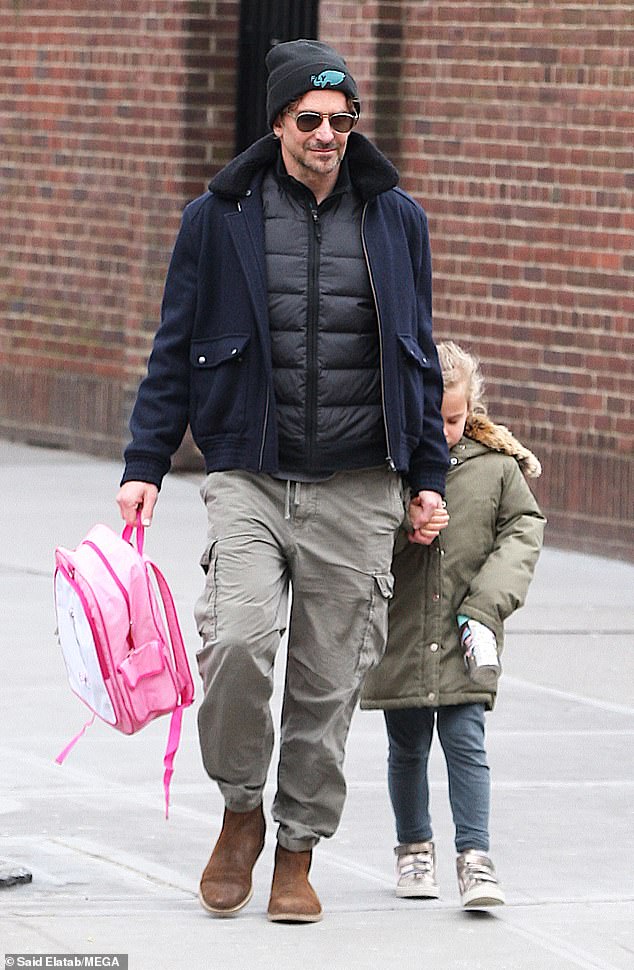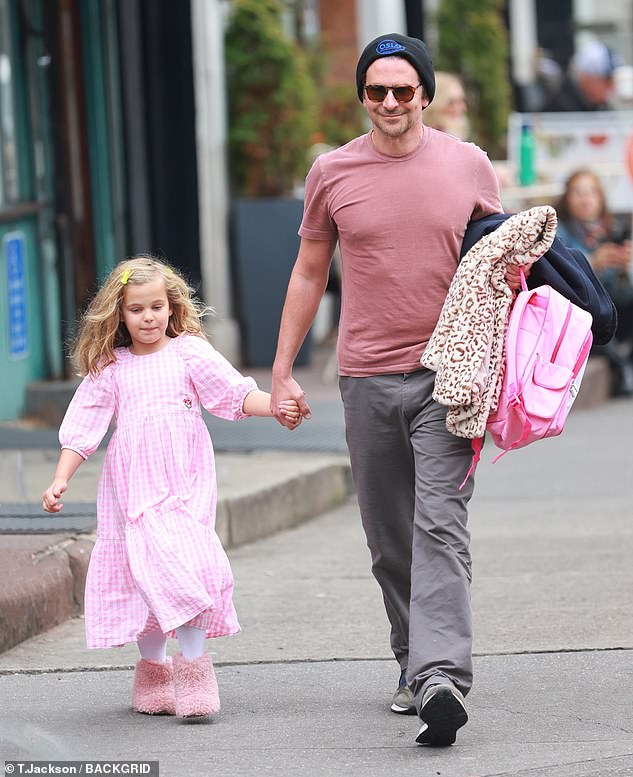 Bradley Cooper es la imagen de un padre cariñoso mientras toma de la mano a Lea, su hija de cinco…