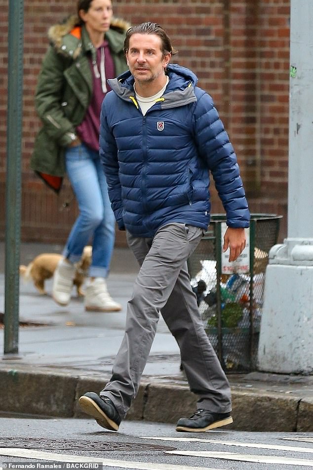 Bradley Cooper usa una chaqueta azul mientras hace recados en Nueva York… el día después de su cumpleaños número 48,…