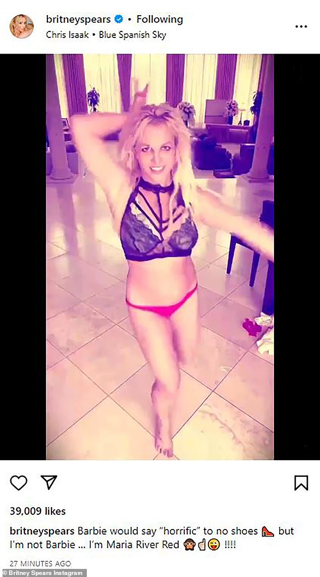 Britney Spears compartió un video de sí misma bailando en ropa interior en su Instagram.La estrella, de 41 años, subtituló…