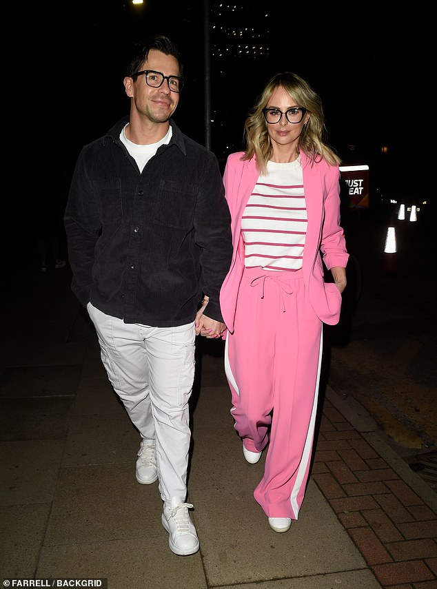 Rhian Sugden toma de la mano a su esposo Oliver Mellor mientras disfrutan de una romántica cena de bistec en…