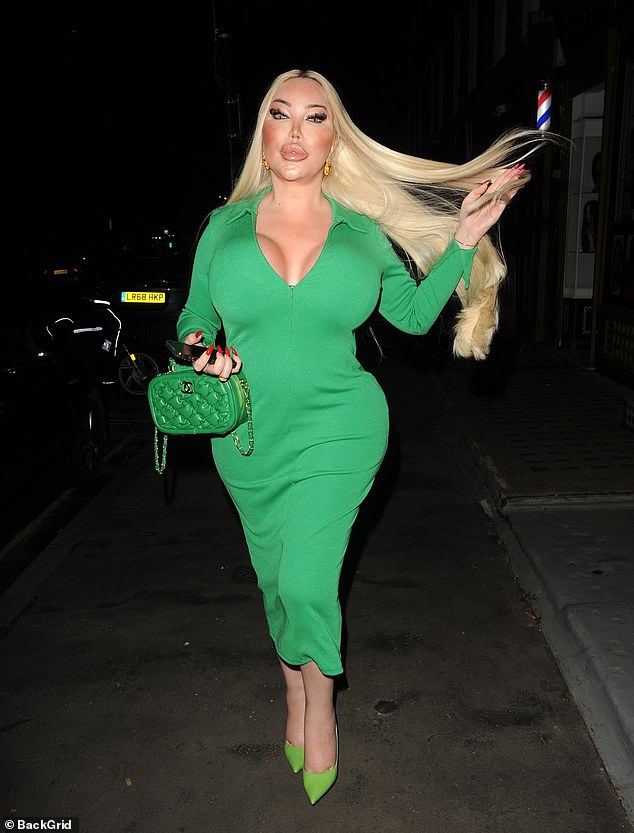 Jessica Alves hace alarde de los resultados de su tercer trabajo de senos con un vestido verde ceñido al salir…