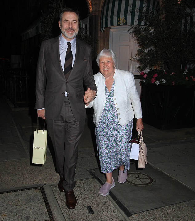 David Walliams toma de la mano a su madre después de llevarla a cenar antes de llevarla a casa en…