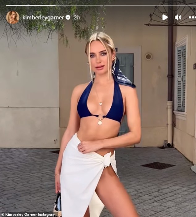 Kimberley Garner looks effortlessly chic in a skimpy blue bikini as she enjoys a lavish holiday with her new boyfriend…