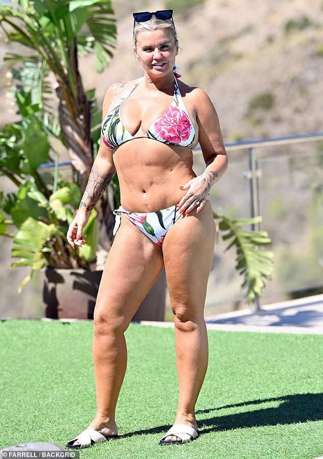 Kerry Katona showed off her incredible three stone weight loss transformation in a white floral bikini on Wednesday as she…