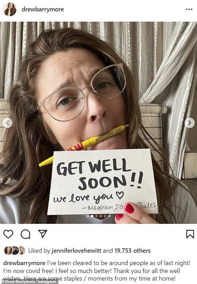 Drew Barrymore reveló a sus fanáticos en Instagram el martes que estaba libre de covid después de dar positivo cinco…