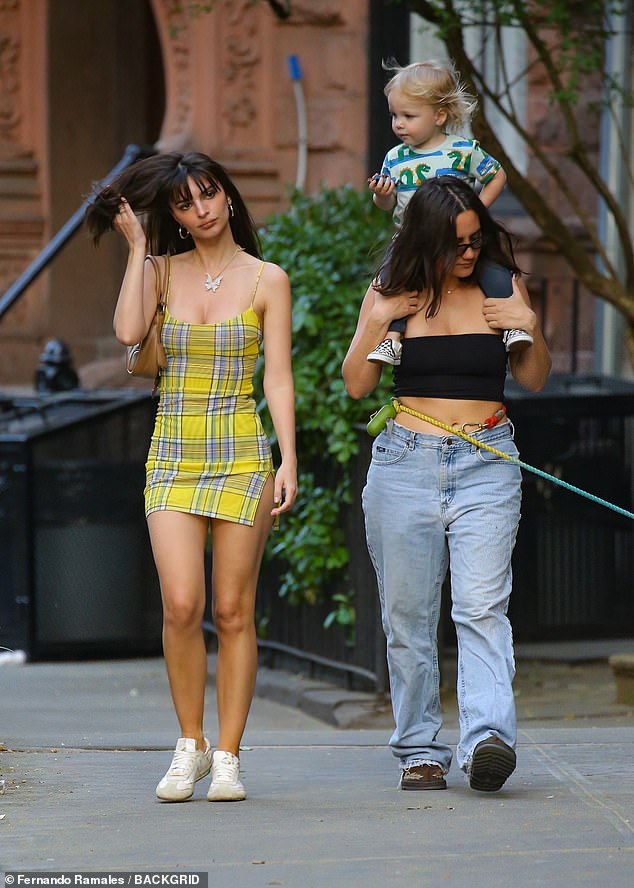 Emily Ratajkowski mostró sus piernas tonificadas mientras salía con su hijo Sylvester y una amiga en la ciudad de Nueva…