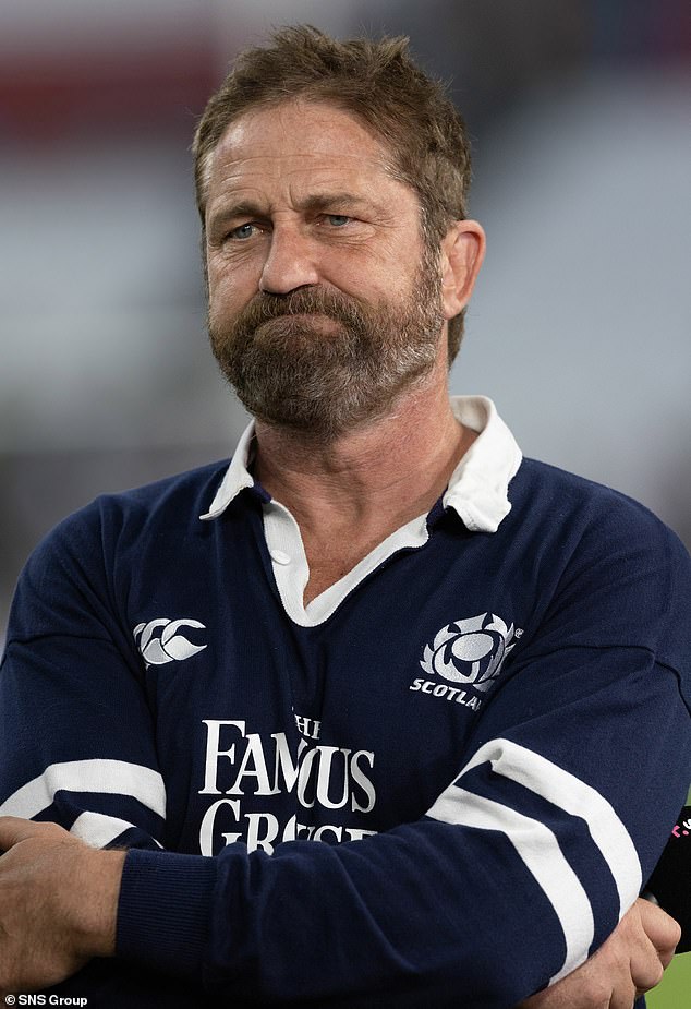 Gerard Butler parece desinflado mientras observa a su Escocia natal perder 18-3 ante Sudáfrica en la Copa Mundial de Rugby…