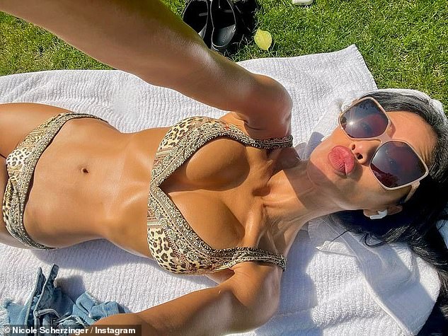 Nicole Scherzinger hace una exhibición MUY tetona mientras se pone un bikini con estampado de leopardo para tomar el sol…
