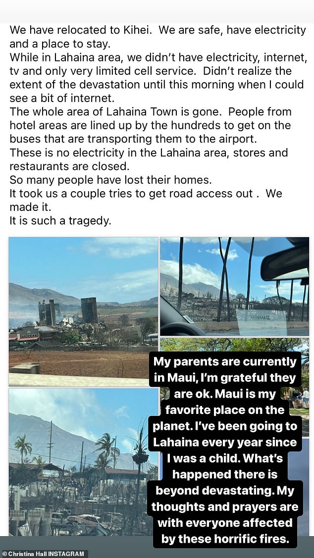 Christina Hall reveló que sus padres se encuentran actualmente en Maui, el epicentro de los devastadores incendios forestales en Hawái.La…