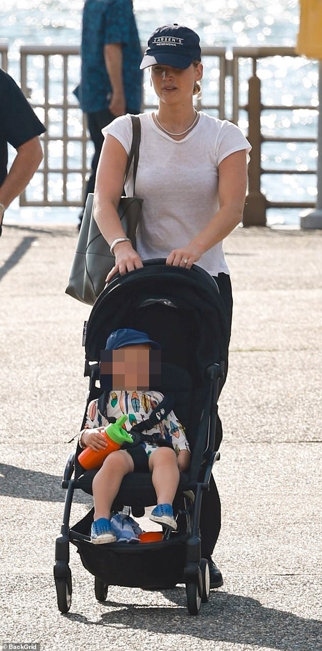 Jennifer Lawrence luce una figura informal con un jersey de punto gris y vaqueros mientras se dirige al parque para…
