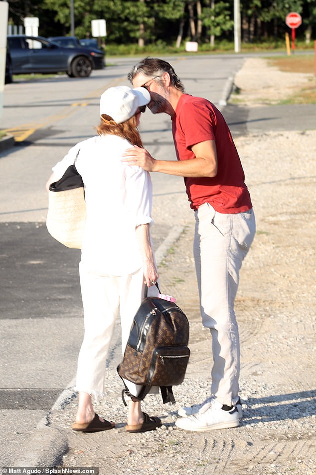 Julianne Moore y su esposo Bart Freundlich comparten un beso al llegar al aeropuerto de los HamptonsPor Amy Lamare para…