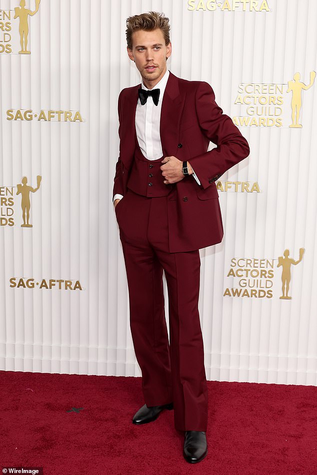 Austin Butler looked dapper on Sunday when he attended the 29th Annual Screen Actors Guild Awards wearing a tailored burgundy…