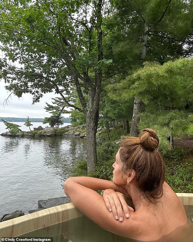 Cindy Crawford, de 57 años, se ve increíble mientras posa en topless en un jacuzzi mientras está de vacaciones en…