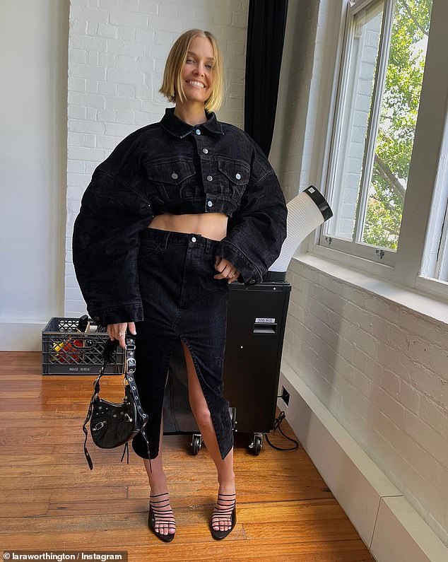 Lara Worthington muestra su inusual atuendo de diseñador de mezclilla doble inspirado en globos valorado en la friolera de $…