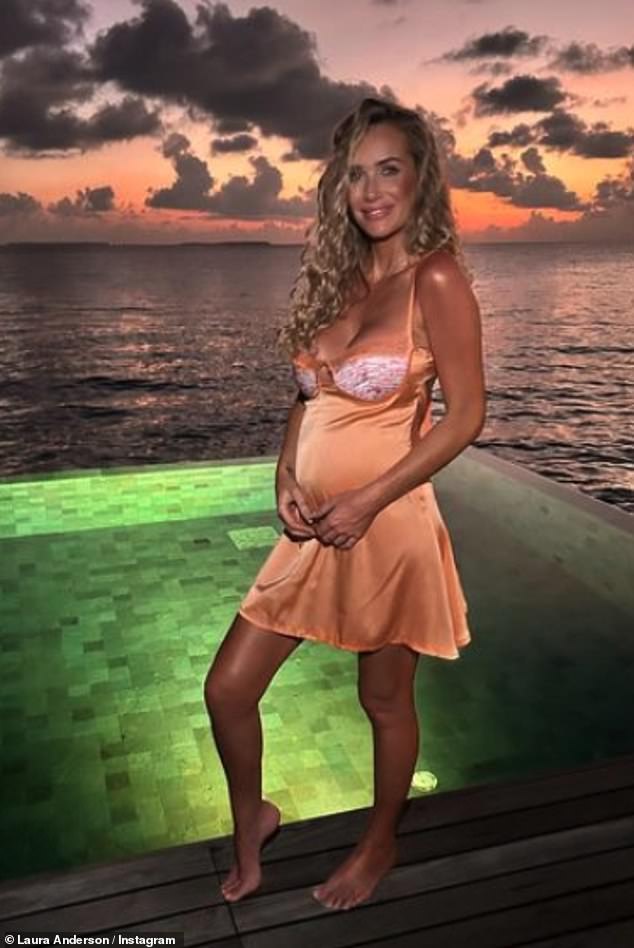Actualmente está esperando su primer hijo con el actor Gary Lucy, de 41 años.Y Laura Anderson mostró su creciente bulto…