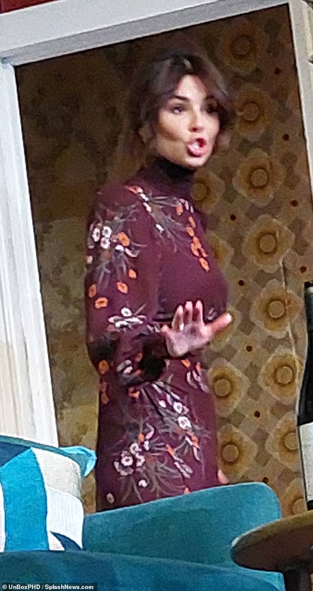 Emily Atack luce una exhibición de piernas largas con un conjunto azul y blanco mientras se une a las glamurosas…