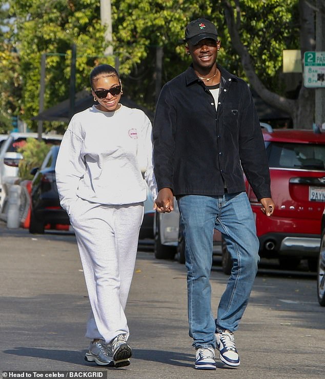 Lori Harvey y su actor Damson Idris lucen totalmente enamorados mientras se toman de la mano y sonríen de oreja…