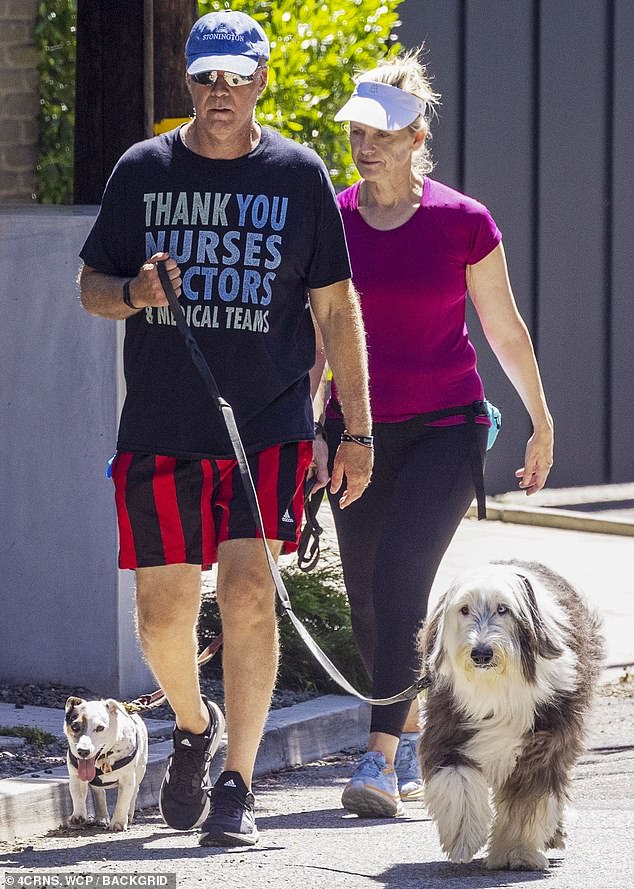 Will Ferrell disfruta de un paseo bajo el sol con su esposa de 23 años, Viveca Paulin, y sus perritosPor…
