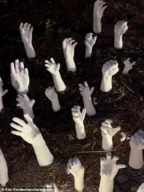 Kim Kardashian ha revelado sus decoraciones de Halloween terriblemente caras, con calaveras, momias y moldes de las manos de sus…