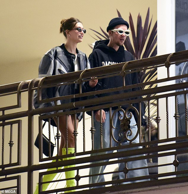 Hailey Bieber se destaca con un par de llamativas botas verde neón mientras disfruta de una noche romántica con su…