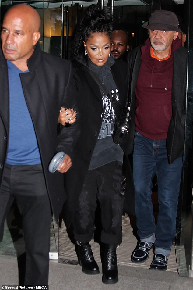 Janet Jackson muestra sus credenciales de estilo vanguardista con una gabardina y botas gruesas mientras disfruta de la cena de…