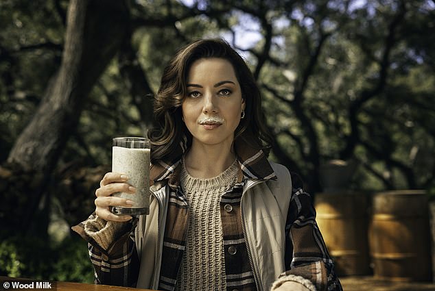 Aubrey Plaza interpreta al cofundador de la compañía ficticia de bebidas Wood Milk en la divertida nueva campaña promocional de…