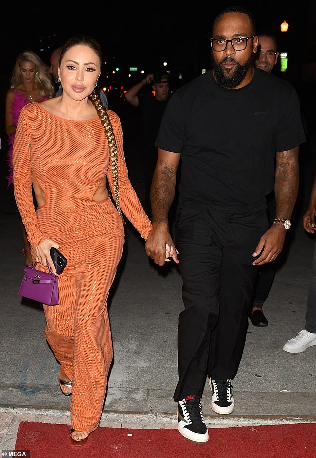Larsa Pippen, de 49 años, chisporrotea con un mini vestido para una cita nocturna con su novio Marcus Jordan, de…
