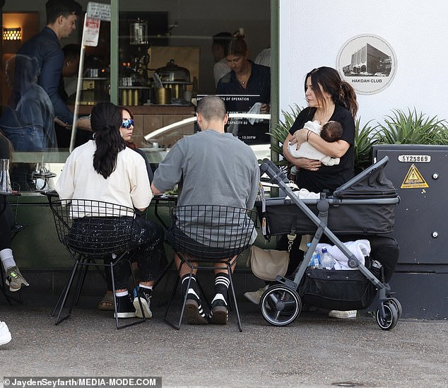 Los nuevos padres Martha Kalifatidis y Michael Brunelli llevan a su hijo Lucius a su primer brunch en Bill’s Bondi…
