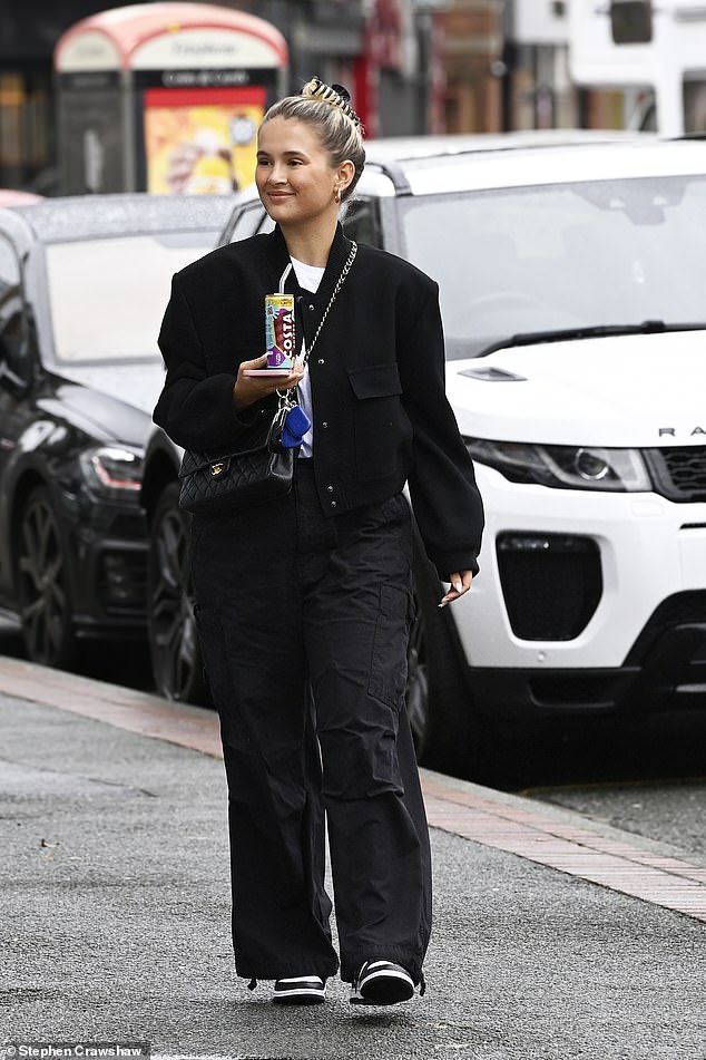 Molly-Mae Hague se ve elegante con una chaqueta bomber negra mientras se dirige a Cheshire, después de hablar sobre sus…
