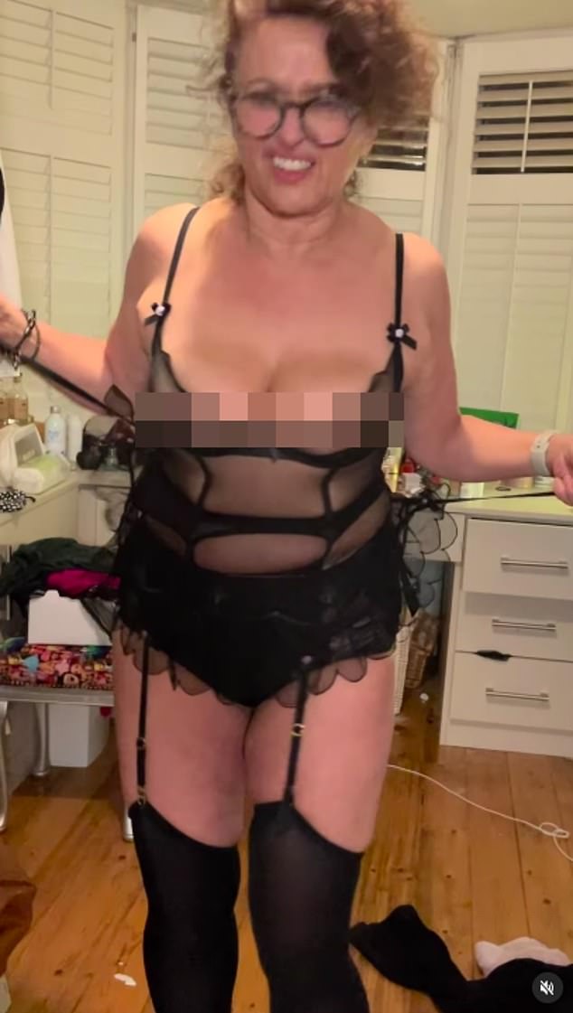 Nadia Sawalha se desliza en un corsé transparente tetona y tirantes mientras se burla de la expectativa de usar lencería…