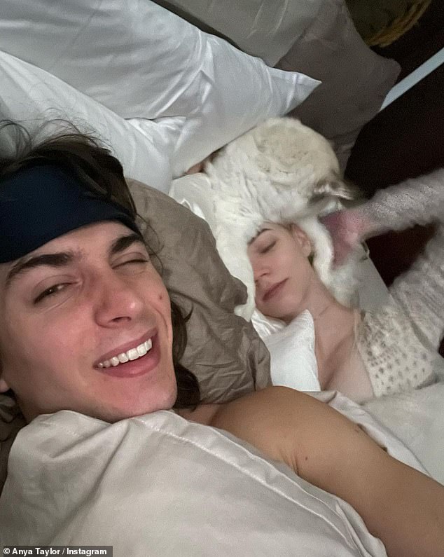 ‘Feliz Navidad a todos ustedes, asquerosos animales’: Anya Taylor-Joy envía un saludo navideño desde su acogedora cama con su compañero…