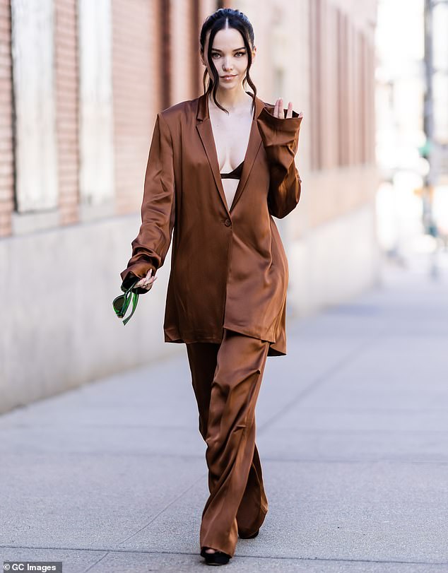 Dove Cameron mostró su lado atrevido mientras mostraba su escote en un sostén debajo de un traje de raso cuando…